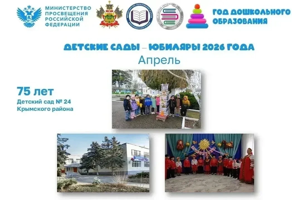 🎉 Дорогие друзья! С гордостью поздравляем детский сад станицы Варениковской, который в апреле отмечает свой 75-летний юбилей!